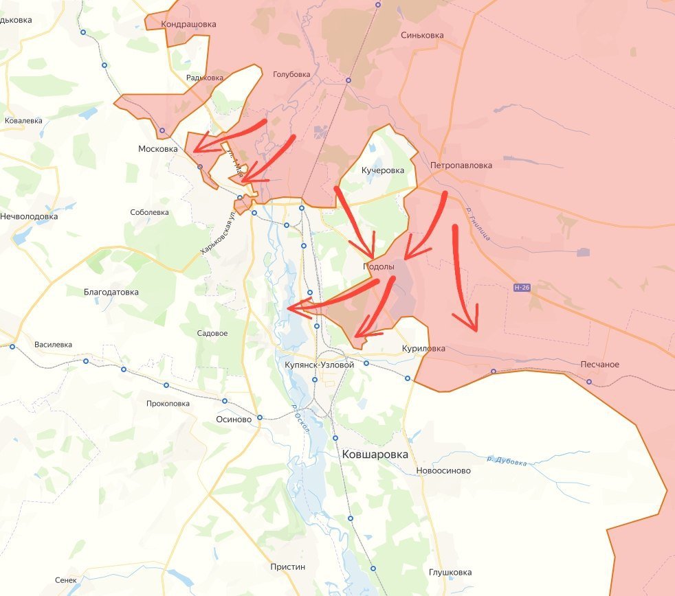 На Купянском направлении продолжаются интенсивные боевые действия. По информации российских источников, подразделения ВС РФ прорвали оборону ВСУ в районе Петропавловки и ведут штурм населённого пункта Подолы, значительная часть которого, как утверждается, перешла под контроль российских войск.