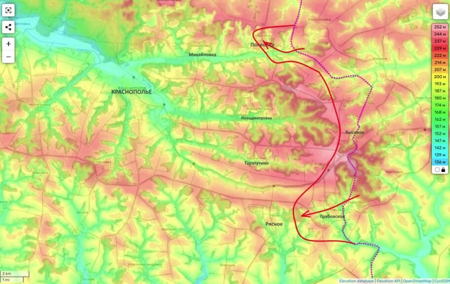 Отдельное внимание аналитик уделил Сумскому направлению. По его словам, заход российских подразделений в Гробовское и ожесточённые бои в районе Покровки постепенно меняют ситуацию. Он также указывает на важность Новодмитровки и долины, ведущей к Краснополью - крупному районному центру.