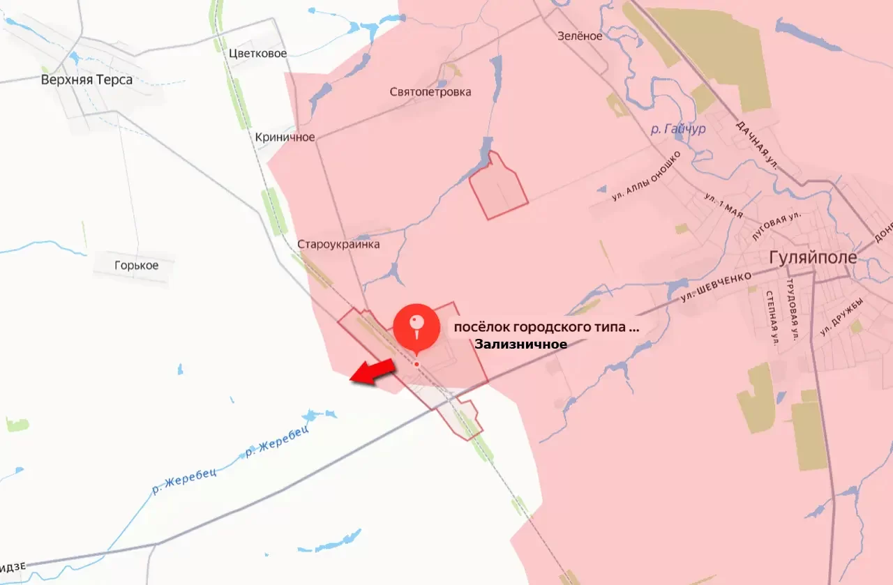 В результате наступательных действий и уничтожения противника на позициях российские подразделения вышли западнее железнодорожной ветки в Зализничном и взяли под контроль участок автомобильной дороги, ведущей в направлении села Верхняя Терса. В этом селе сходятся сразу несколько важных для восточной части Запорожской области автодорог, включая дорогу на Орехов, сообщает