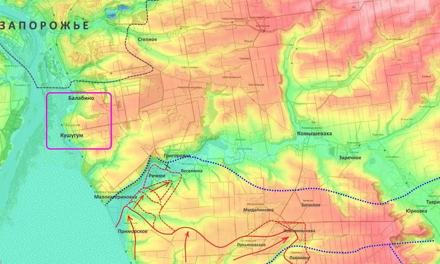 "Что интересно: украинские околовоенные волонтёры отмечают, что наши диверсионно-разведывательные группы начали проникать севернее реки Конка. Это севернее Приморского, Речного, и их видели даже в районе Кушугума и Балабино. То есть, это уже непосредственные пригороды Запорожья, потому что Балабино плавно переходит в южные окраины Запорожья", - проинформировал Подоляка.