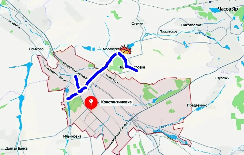В Константиновке, образующей Краматорско-Константиновскую агломерацию в ДНР, оказались почти полностью заблокированными около трех тысяч военнослужащих ВСУ. Причиной стал недавний прилет мощной трехтонной фугасной авиабомбы (ФАБ-3000) с УМПК по дамбе Молочарского водохранилища.