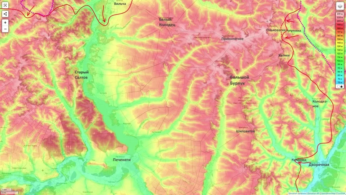 Эксперты полагают, что российское командование сейчас формирует в Харьковской области новый плацдарм шириной восемь километров, проходящий по линии Чугуновка - Меловое.