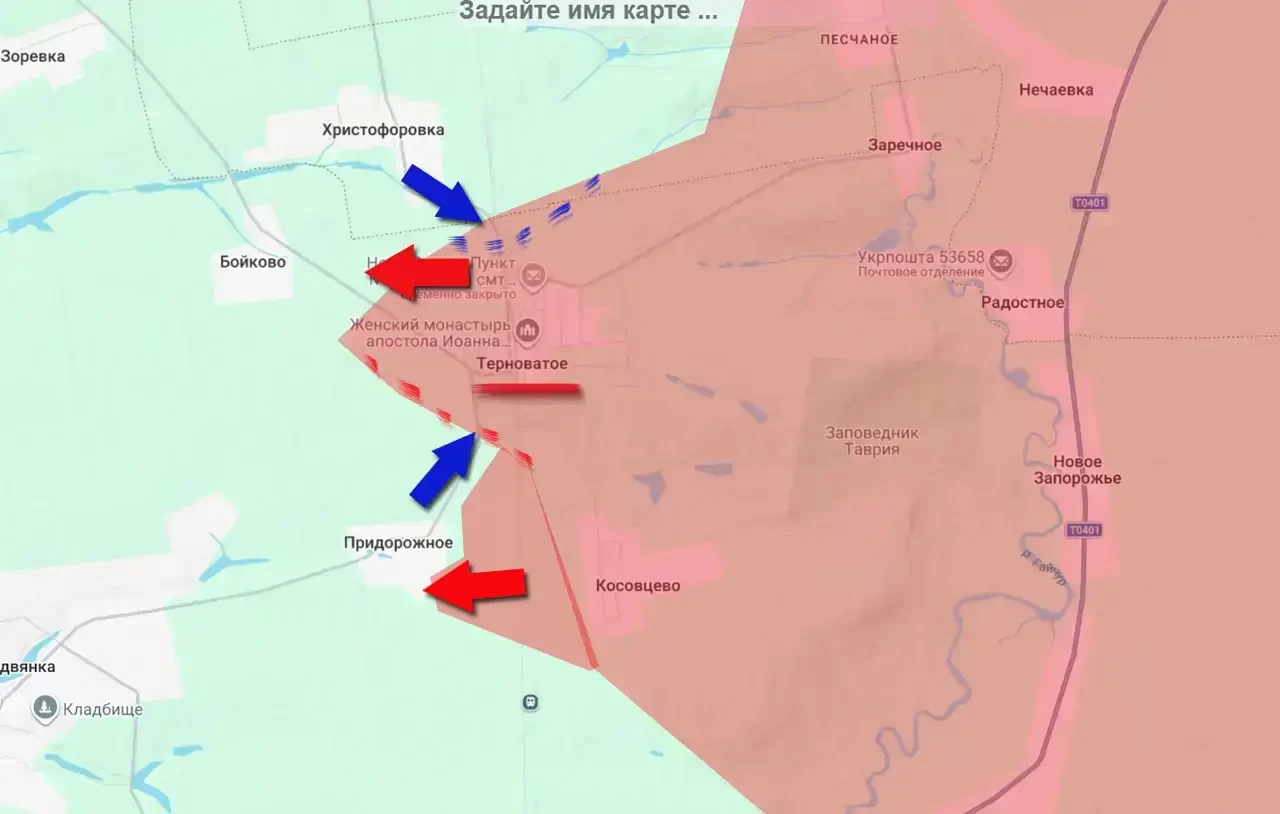 К настоящему моменту из района Терноватовских высот поступают сообщения о том, что украинские войска наибольшую активность проявляют к северу от Терноватого, а также южнее - в районе Зализничного (Железнодорожного).