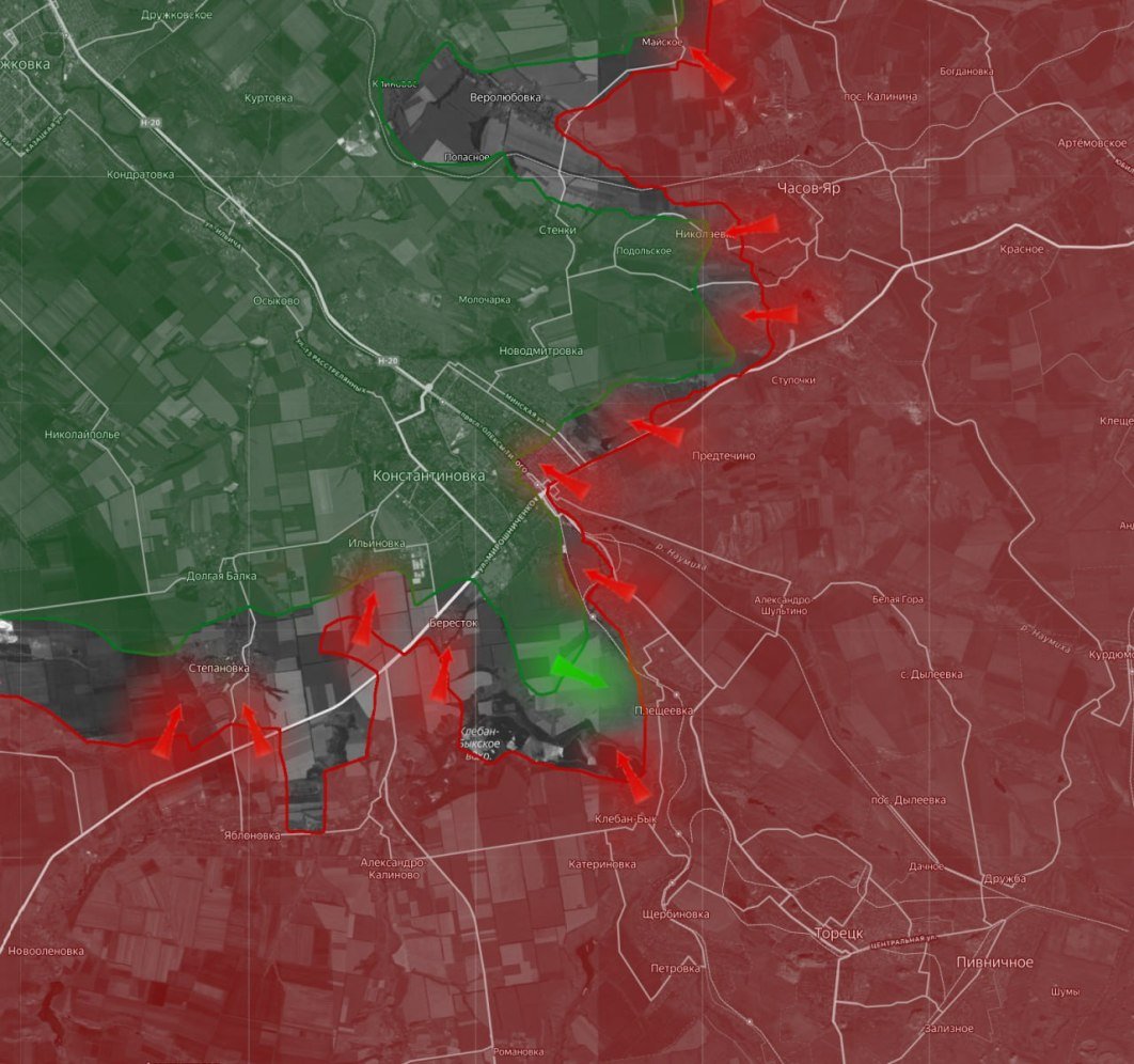 На рубеже Степановка - Бересток (серая зона) ВС РФ занимают новые позиции в лесополосах. Севернее Часов Яра зафиксировано продвижение в районе Миньковки.