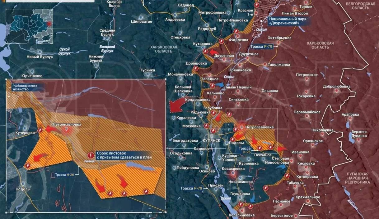 На Купянском направлении продолжаются бои в Петропавловке и Подолах. Есть успехи в районе Кучеровки и Куриловки. На Богуславском направлении ВС РФ ведут бои южнее Боровской Андреевки.