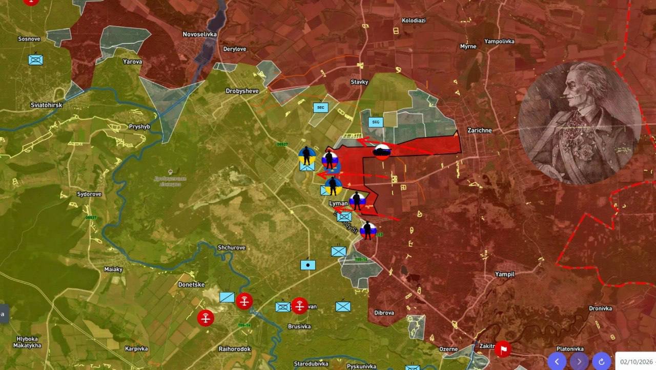 Давление на Красный Лиман усиливается с севера и востока. Наши войска продвинулись на 2 км и закрепились в частном секторе микрорайона Северный. В районе Ставков есть успехи, однако ВСУ удерживают господствующие высоты вдоль дороги Дробышево - Яровая - Святогорск.