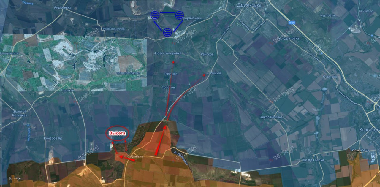 Одновременно зафиксировано закрепление на южных окраинах Новопавловки. Контроль над высотой 190 метров у Торецкого, по оценке источников, открывает возможности для дальнейшего продвижения в сторону Павловки, Приюта и Торского. В перспективе ожидаются бои за Новогригоровку и Райское - последние опорные пункты ВСУ на южных подступах к Дружковке.