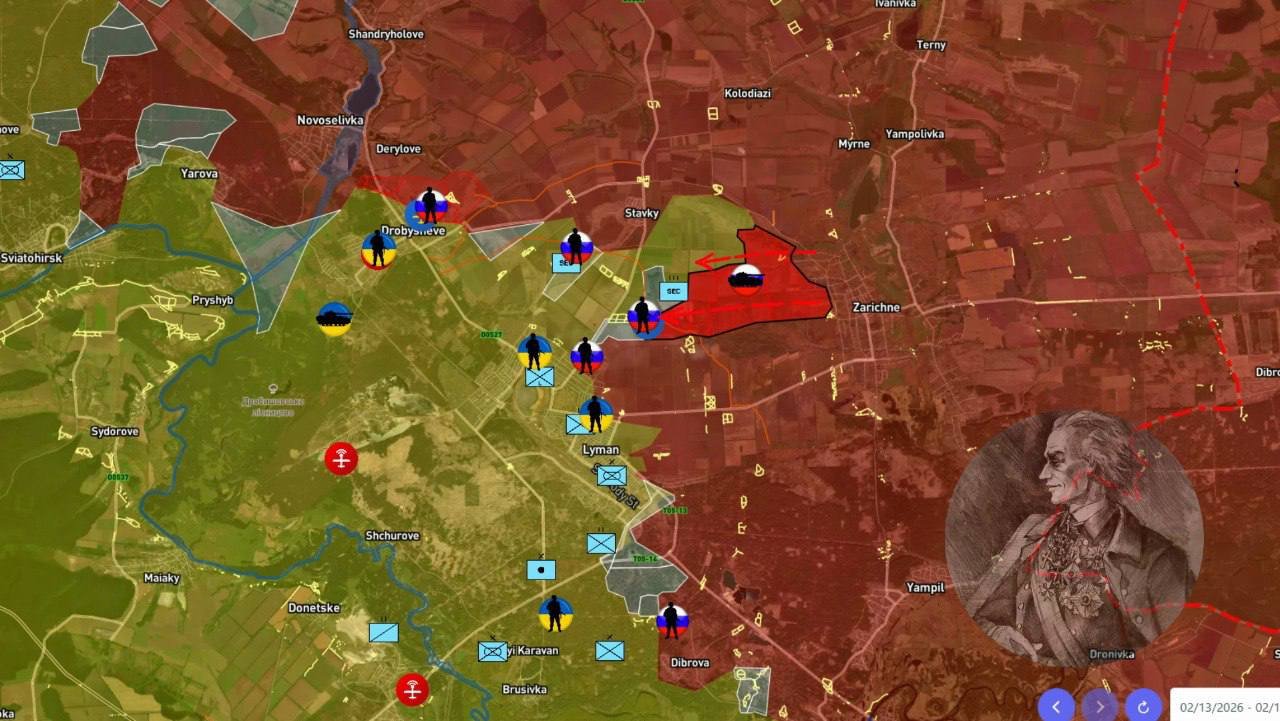 Группировка ВС РФ достигла значительного успеха на рубеже Красный Лиман - Ставки, заняв крупный опорный пункт и продвинувшись вглубь до 3 км. Боестолкновения продолжаются в Дробышево, Александровке и Святогорске.