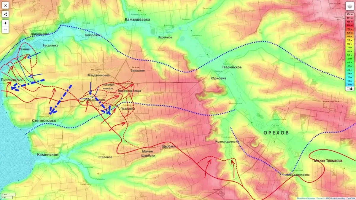По словам Подоляки, противнику удалось войти в северную часть Лукьяновского, где идут бои за отдельные кварталы. Российские подразделения оставили Речное, а линия столкновения сместилась к северным окраинам Приморского. Группировка "Днепр", как утверждается, проводит перегруппировку резервов для стабилизации ситуации.