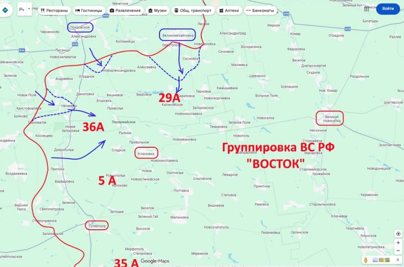 "А сегодня ещё пришла очень хорошая новость о том, что наши подразделения чуть севернее нанесли удар из района Ивановки на Гавриловку и тоже сумели придвинуться до самых окраин этого населённого пункта. На самом деле Гавриловка - это очень важное село, наш контроль над которым создаст очень большие проблемы для противника. Именно здесь сходятся его линии обороны и занятие Гавриловки командованию противника допустить нельзя", - уточнил Подоляка.
