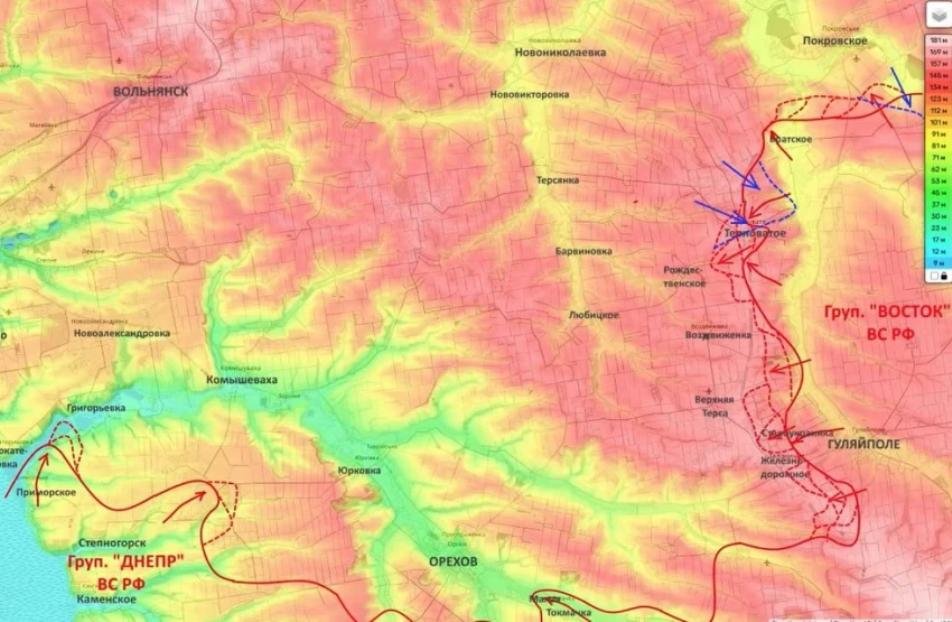 По его оценке, потеря этих населённых пунктов может осложнить положение украинских подразделений и вынудить их отойти на новые оборонительные рубежи. Одновременно продолжаются боевые действия в районе Гуляйполя и Верхней Терсы.