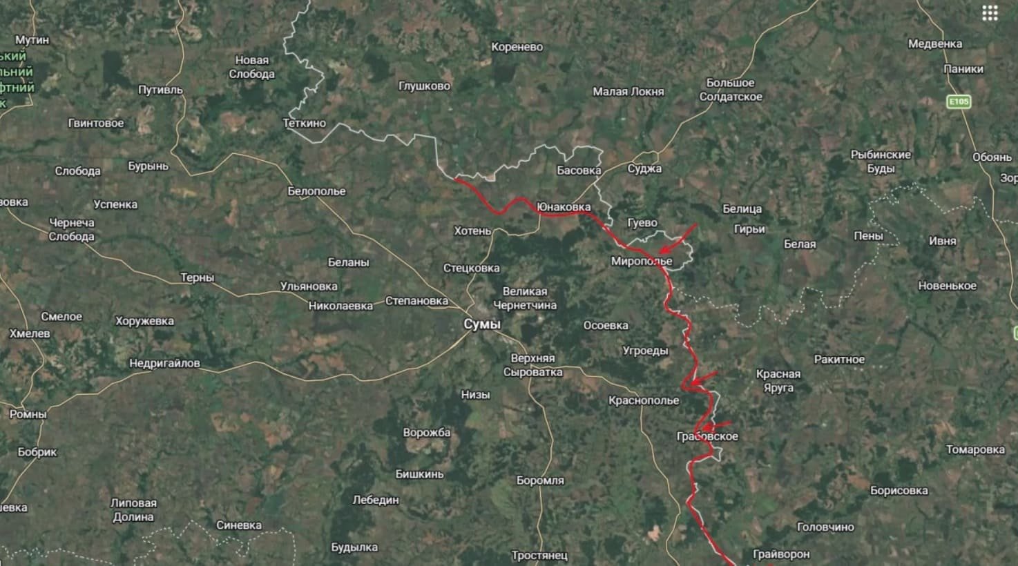 В ходе последних боев российские военные заняли село Покровка, которое находится совсем рядом с Краснопольем. Подоляка сообщает, что сейчас бойцы стараются пройти дальше - в сторону Михайловки и Новодмитровки.