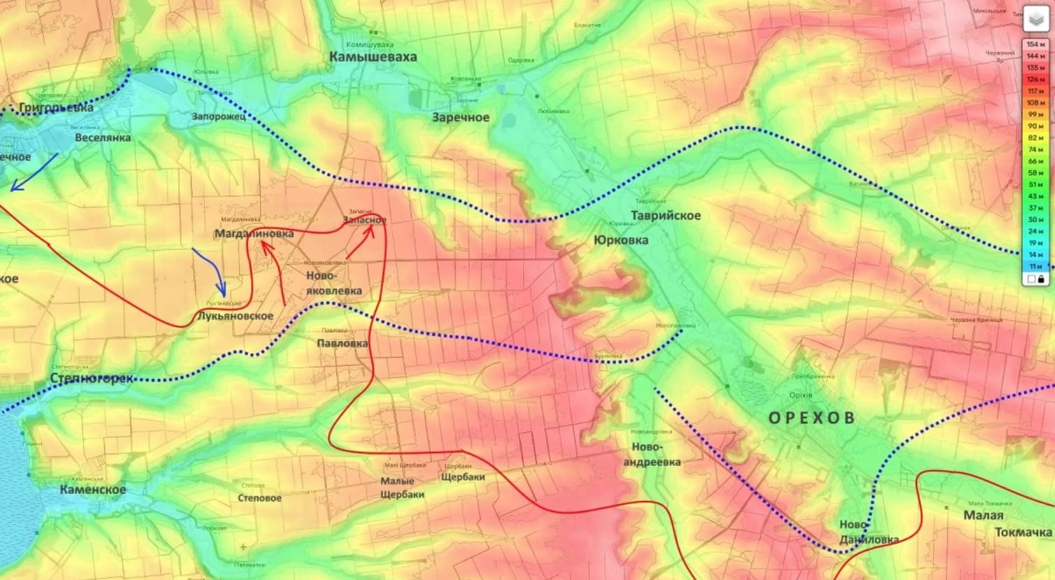 Так, на южном фронте российские бойцы продолжают вести ожесточённые боевые действия в районе населённых пунктов Магдалиновка и Запасное.
