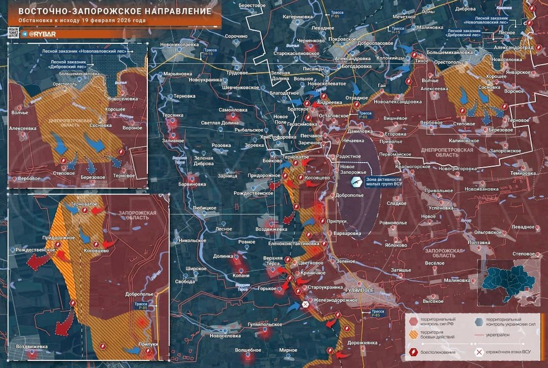 На Запорожском участке разворачиваются тяжелые и кровопролитные бои, эпицентр которых сместился к северу от Степногорска и в район Приморского. Из-за активности диверсионных и штурмовых групп противника закрепить устойчивый контроль над новыми рубежами пока затруднительно.
