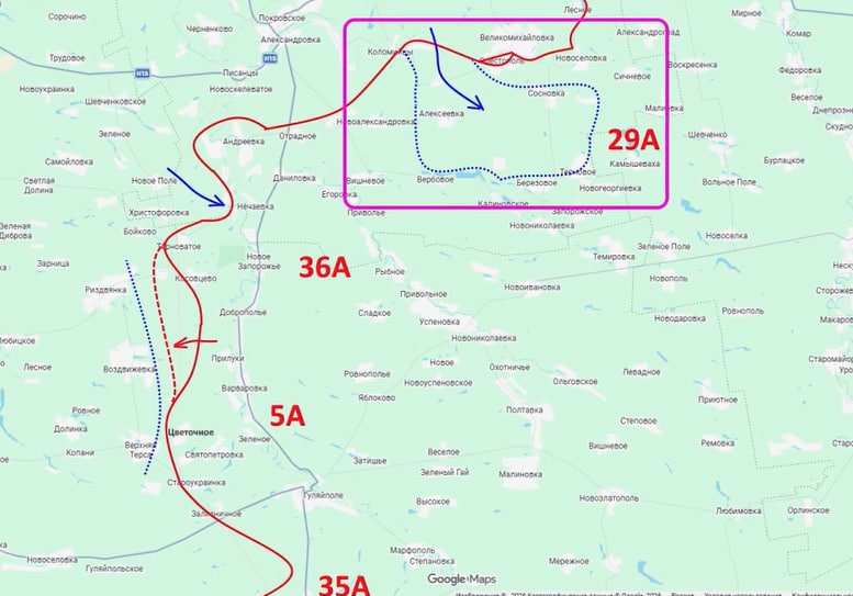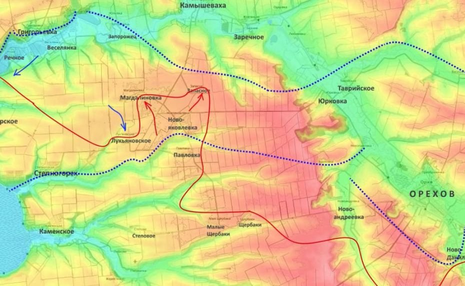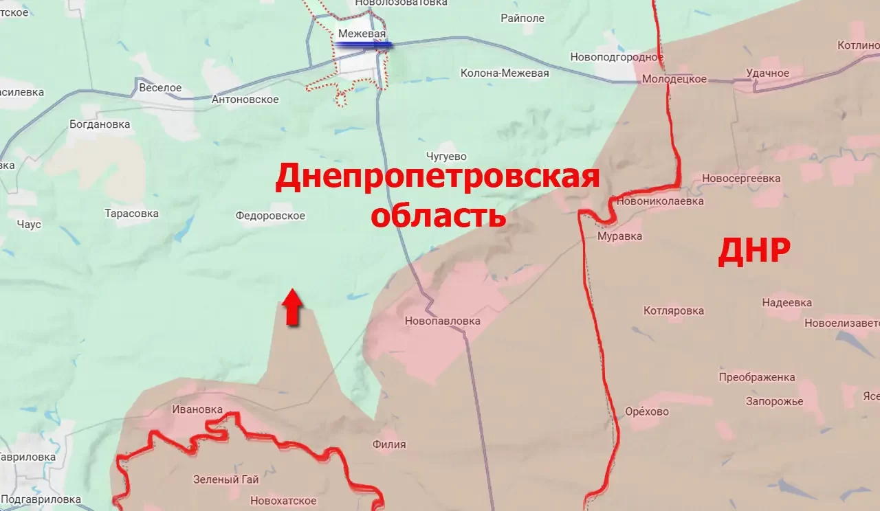 Это одновременно и расширение западного фланга у ранее освобождённой Новопавловки, и продвижение к важному транспортно-логистическому узлу ВСУ на востоке Днепропетровщины - пгт Межевая, отмечает