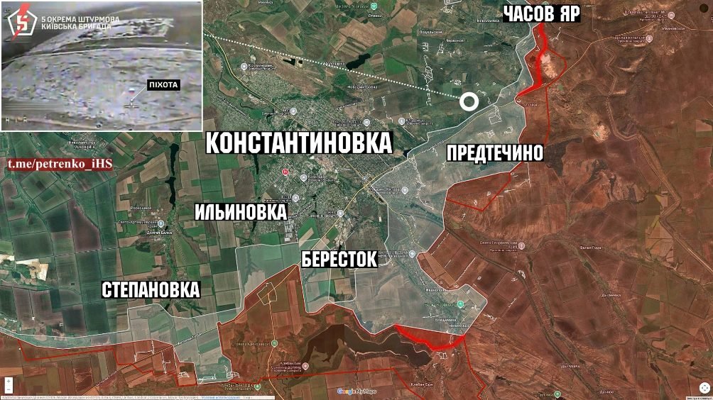 Особое внимание приковано к Константиновскому направлению. Вчерашний точный удар по дамбе критически усложнил логистику ВСУ в этом районе. Воспользовавшись ситуацией, Вооружённые силы РФ усилили натиск на рубеже Ильиновка - Бересток. Цель ясна - выровнять "карман", образовавшийся у южных окраин Константиновки.