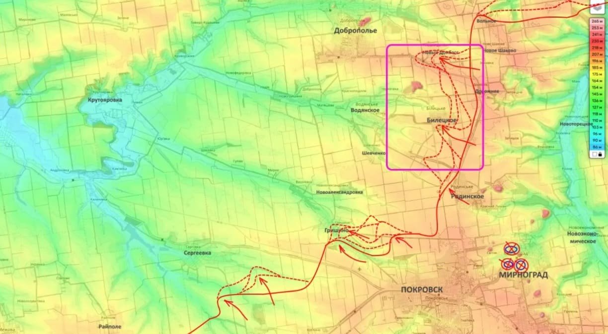 На Покровском участке фронта не смолкают очень ожесточённые боевые действия в населённом пункте Гришино. На сегодняшний день почти половина этого села находится под контролем Вооружённых сил России.