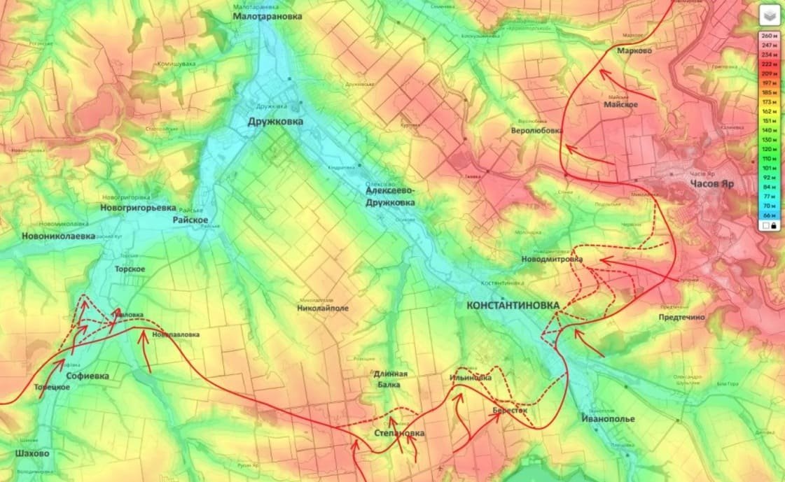 Занятие господствующих высот позволит ствольной артиллерии ВС РФ взять под тотальный огневой контроль всю Славянско-Краматорскую агломерацию, а операторам беспилотников обеспечит безупречный радиогоризонт.