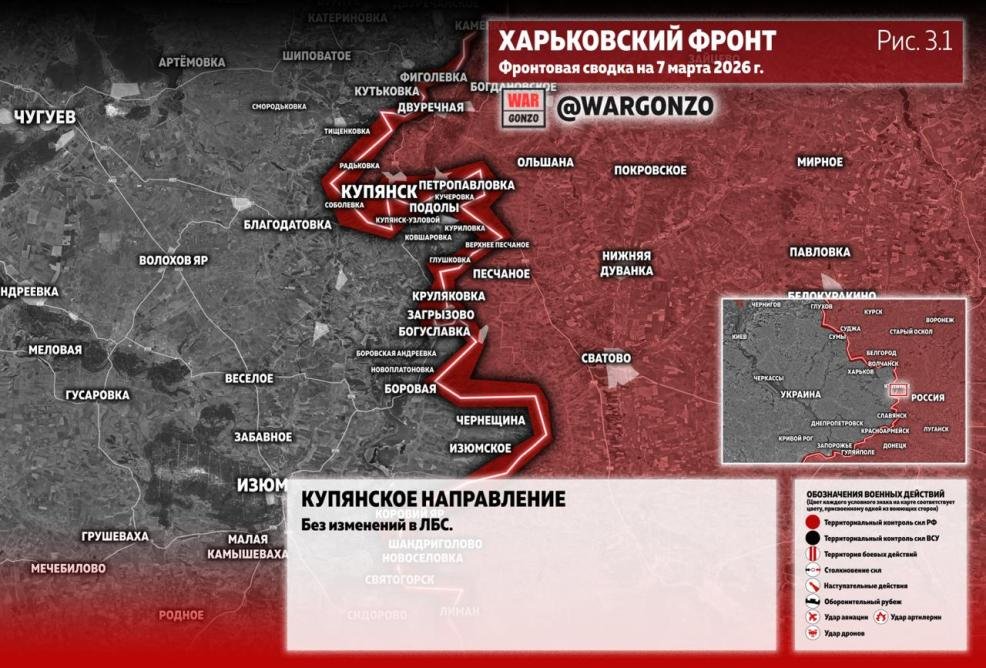 Карта боевых действий на Купянском направлении: свежие данные на 07.03.2026