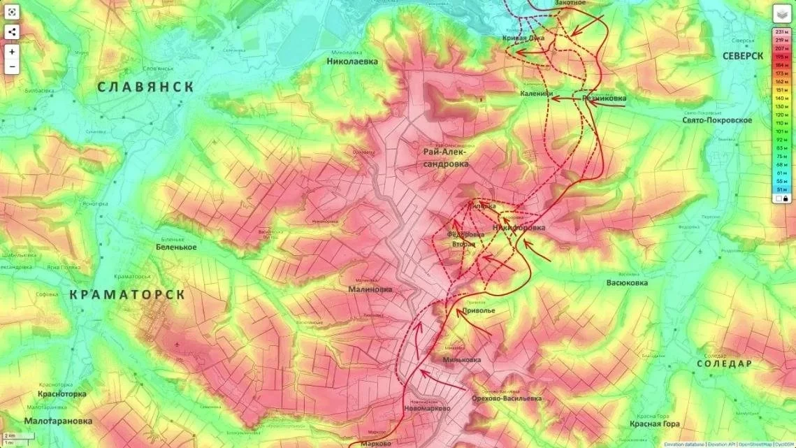 Удары наносятся одновременно с северо-востока и юго-востока. Главная цель - овладеть этим важнейшим узлом обороны противника. Успех на данном рубеже позволит создать надежный и удобный плацдарм для решающего броска на Краматорск и Славянск.