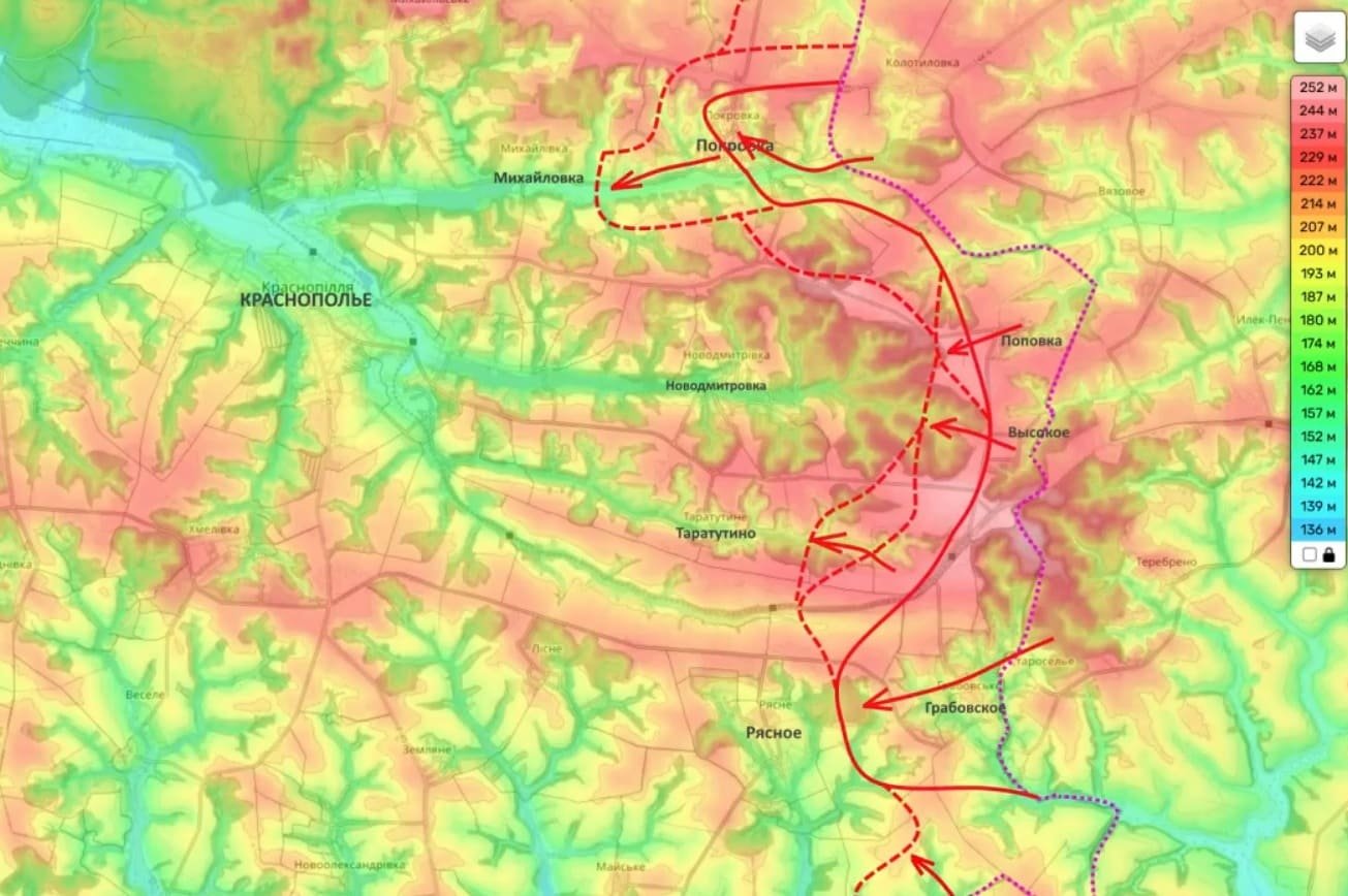 "С Краснопольского направления приходят новости, что мы начали бои за Михайловку и за Таратутино. Таким образом, постепенно двигаемся здесь на Краснополье", - проинформировал блогер.