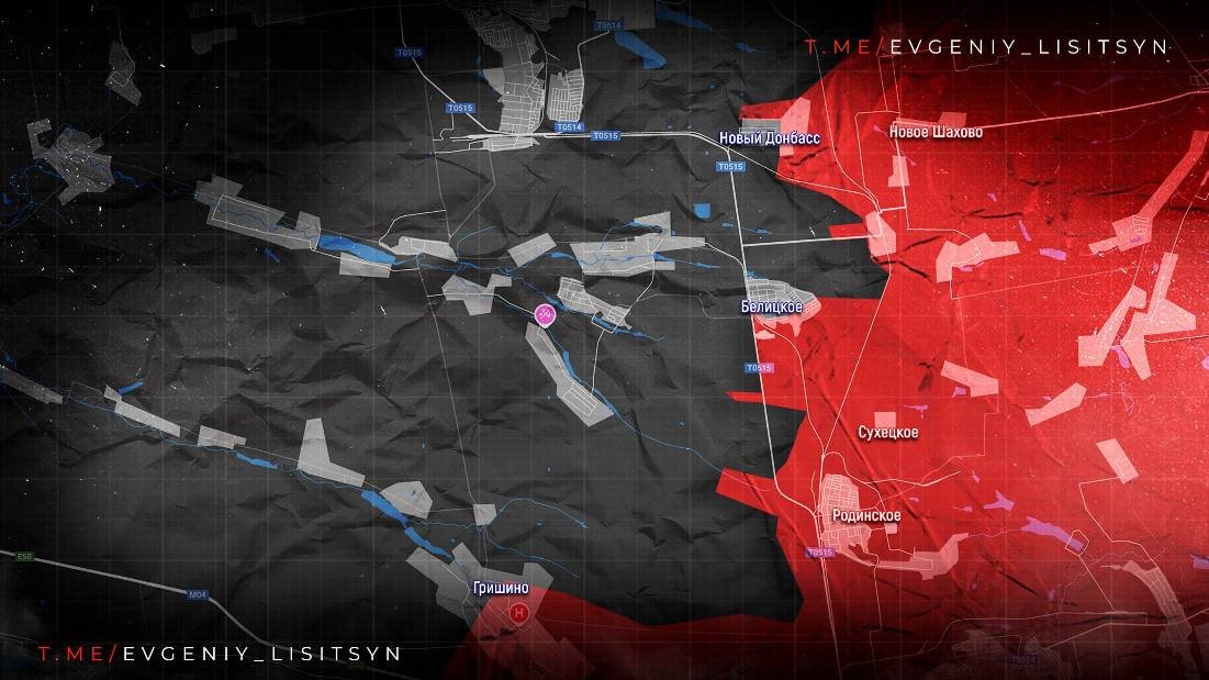 На Красноармейском направлении ВС РФ развивают успех в Гришино. По соседней Новоалександровке наши бьют ФАБами. Встречные бои идут южнее Белицкого, а также в районе Нового Донбасса и Вольного.
