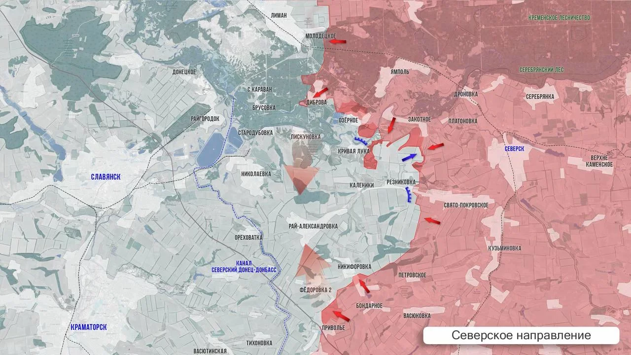 На Северском направлении продолжается выравнивание линии боевого соприкосновения. ВС РФ пробиваются к Рай-Александровке, продвигаясь южнее Резниковки, и уже завязали бои в лесном массиве Бабачий.