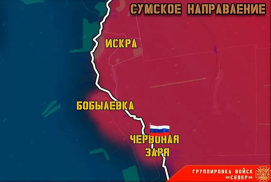 Село Червоная Заря находится на левом берегу реки Клевень в Сумской области у самой границы с РФ. Напротив расположено село Добрый Крестьянин, это уже Курская область. Государственная граница проходит по реке. Таким образом, "северяне" расширили плацдарм контроля в сумском приграничье, тем самым лишив врага возможности наносить террористические удары, в том числе с применением артиллерии, по приграничной российской территории, передаёт