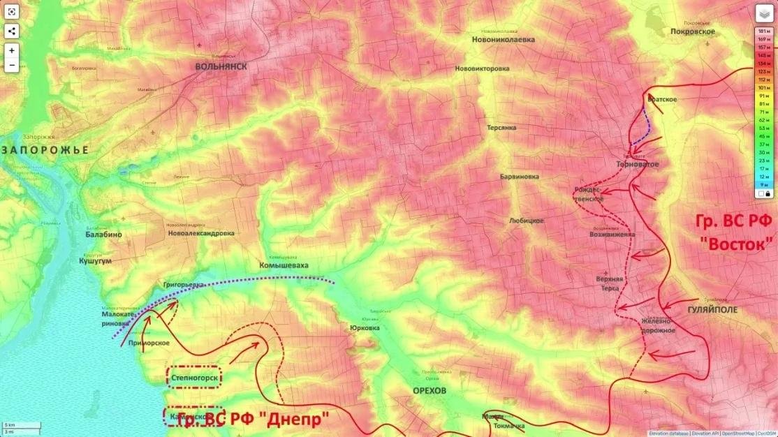 Ключевой задачей может стать блокирование трассы, ведущей к Орехову. Ивановский также отмечает, что после высыхания грунта войска смогут активнее использовать бронетехнику, а расчёты беспилотников - занять позиции в лесополосах.