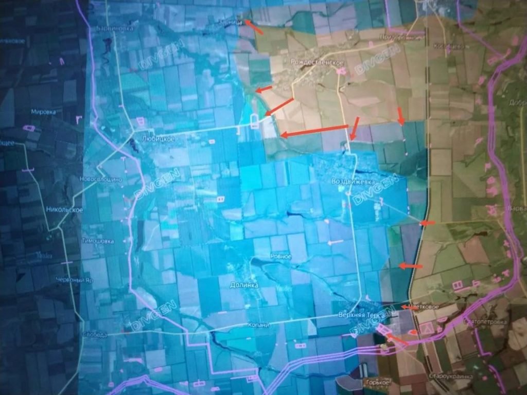 Кроме того, ВС РФ заняли позиции вокруг Воздвиженки, создавая реальную угрозу окружения пункта. Это открывает возможность продвинуться к Любицкому прямо по высотам в обход опорников ВСУ.