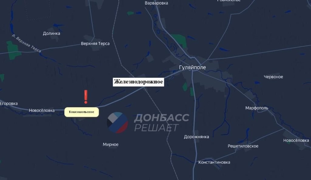 Южнее российские подразделения продвинулись от Железнодорожного (Зализнычного) в направлении Комсомольского (Гуляйпольского) вдоль трассы, которую противник отчаянно пытался удержать любой ценой.