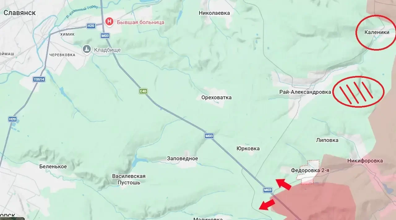 Село Каленики расположено на берегу реки Сухая в пяти километрах к западу от Резниковки и в 18 километрах к востоку от оккупированного ВСУ Славянска. Освобождение этого села и продвижение в его окрестностях позволяет выдвинуть вперед ствольную артиллерию и расчеты FPV-дронов, чтобы наносить удары по позициям противника непосредственно в Славянске и на подступах к городу, отмечает