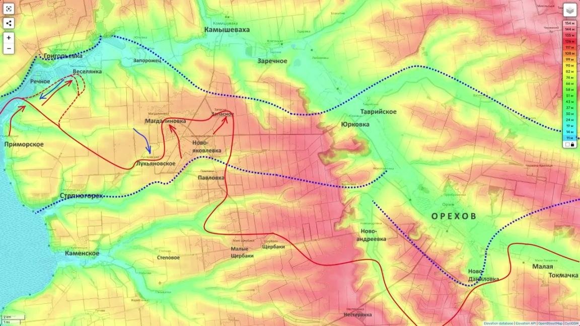 Теперь, по оценке Подоляки, в полосе группировки "Восток" применяется иная контртактика. Он утверждает, что российское командование старается не отвлекаться чрезмерно на локальные вклинения малых групп противника, а продолжает развивать основное направление удара - прежде всего на охват Орехова. Для сдерживания таких вклинений, по его словам, используются заслоны и расчёты беспилотников, которым ставится задача наносить противнику максимальный урон без остановки общего замысла операции.