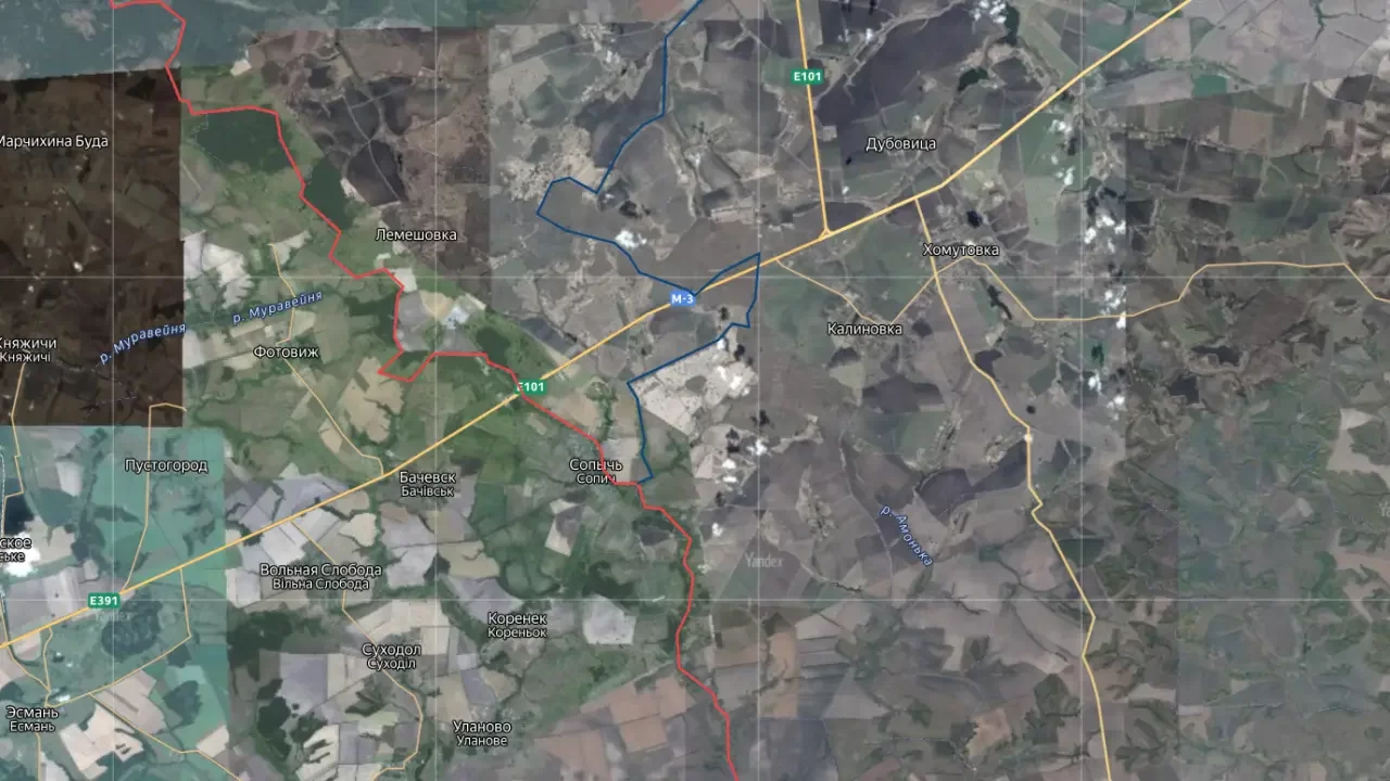 Он добавил, что Сопыч расположен на правом берегу реки Клевень и выше по течению примыкает к российскому селу Некислица. Рядом проходит дорога М02, которая является частью трассы Е101, ведущей на Киев. По его словам, на ней нет даже промежуточных городов до столицы Украины.