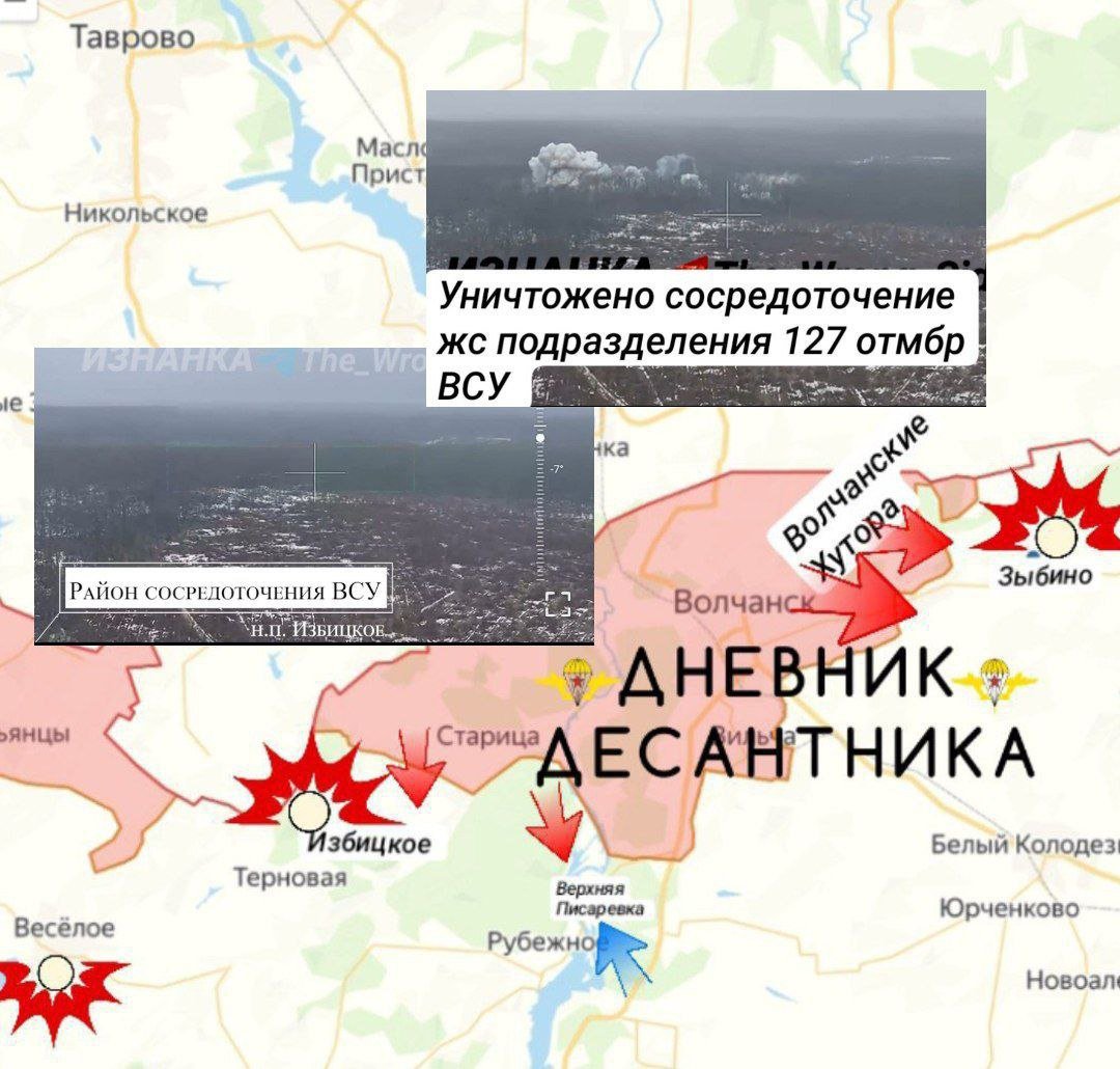 К северу от Верхней Писаревки российские войска выбили врага с ряда позиций. Тяжелейшие бои не прекращаются в населённом пункте Волчанские Хутора, где нашим подразделениям удаётся постепенно расширять зону контроля. В ходе разведывательных мероприятий обнаружен и уничтожен вражеский пункт управления дронами в населённом пункте Зыбино.