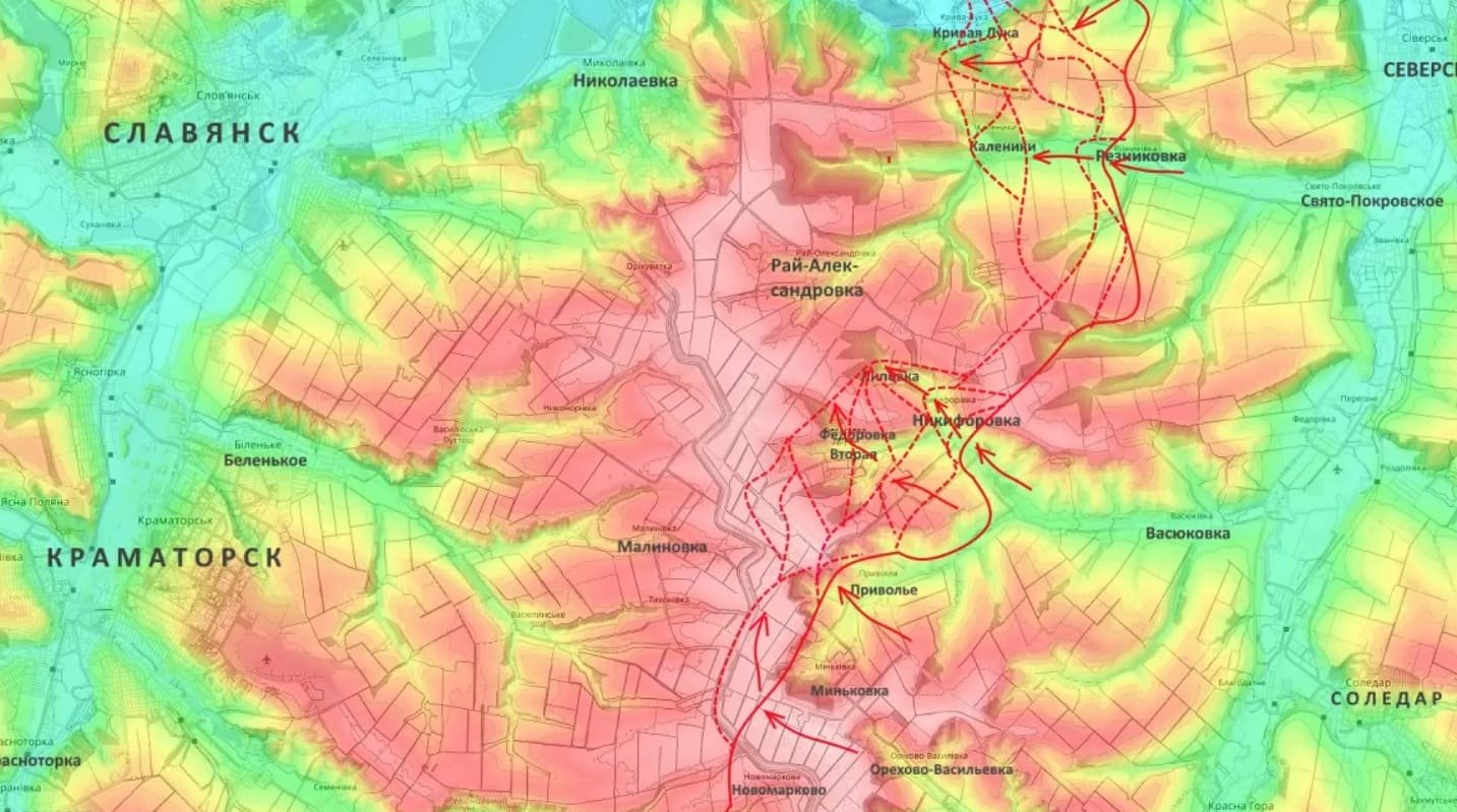 Рай-Александровка - не просто ещё одно село. До 2022 года в нём жило около тысячи человек, а сейчас оно превращено в хорошо укреплённый район на господствующих высотах. Эксперты называют его предпоследним крепким рубежом обороны ВСУ на подступах к Славянску - впереди остаётся только Николаевка, но та чуть северо-западнее.