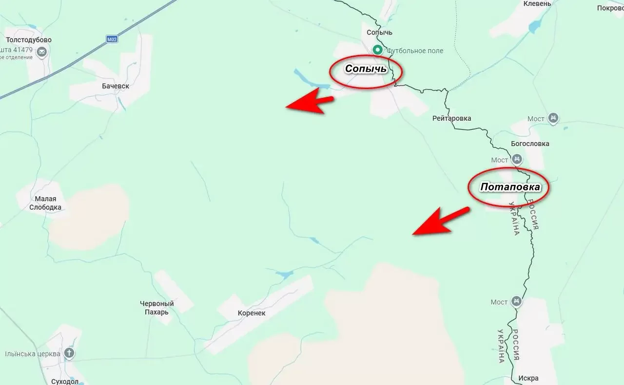 После освобождения нашими войсками села Сопычь, ожесточенные бои развернулись юго-восточнее, где противник удерживал позиции, с которых очень удобно было наносить удары беспилотниками по Курской области. Кроме того, враг попытался отбить обратно село Сопычь, но вместо этого потерял и соседнюю Потаповку. Оба села являются приграничными и дают нашим войскам возможность создать плацдарм для дальнейшего продвижения вглубь Сумской области, пишет