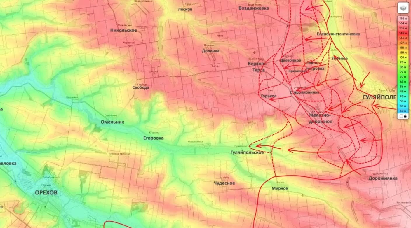 Блогер сообщил также о ведении подразделениями РФ боевых действий на восточной и юго-восточной окраинах села Верхняя Терса, расположенного неподалеку от Гуляйпольского.