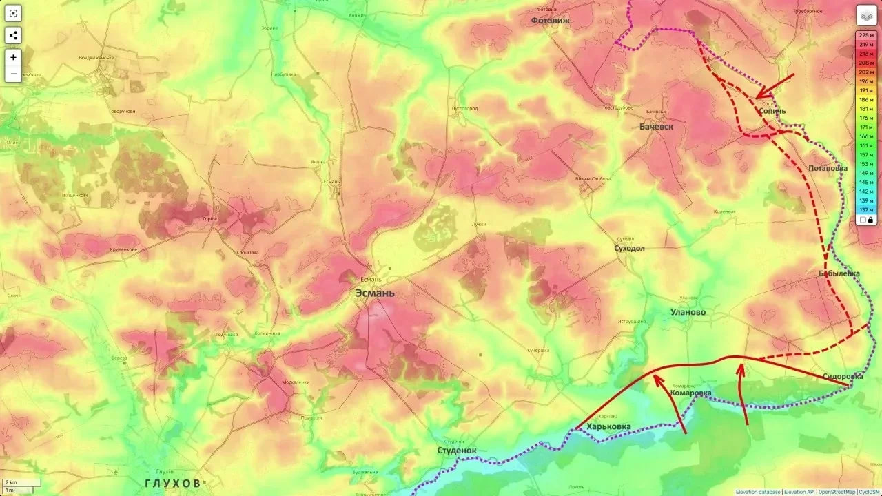 Достаточно значительные изменения линии боевого соприкосновения фиксируются и в приграничных территориях. В Глуховском районе Сумской области российские войска освободили село Потаповка, отбросив силы противника от государственной границы.