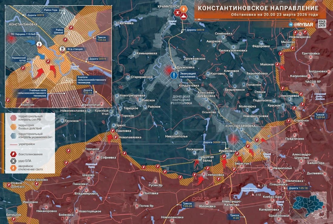 ВС РФ заняли железнодорожную станцию в Константиновке и продвинулись на запад и восток от нее, развивая успех.