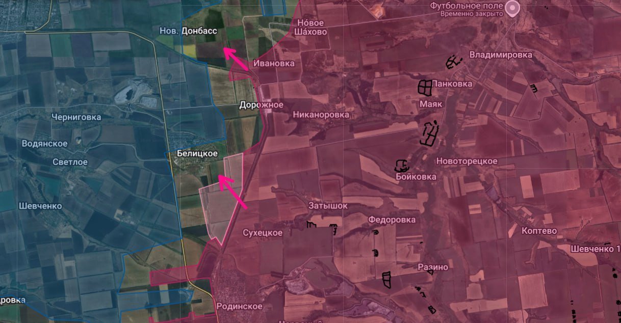 В то же время ВС РФ не только сковали боями врага у Новоалександровки (со стороны Гришино), но и начали наступление на населенный пункт Шевченко, к которому пробиваются также и со стороны Белицкого. Встречные бои в Белицком и Новом Донбассе идут непрерывно.