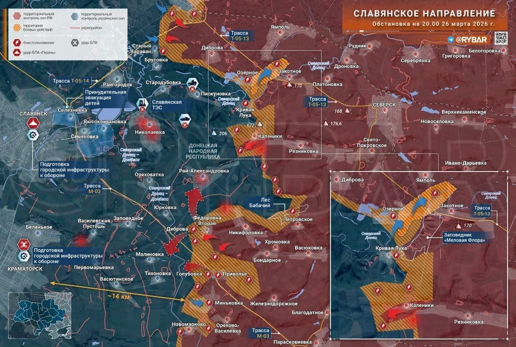 На Славянском участке подтверждено освобождение Никифоровки - важного узла, от которого до Рай-Александровки остаётся менее пяти километров. Опираясь на этот рубеж и Фёдоровку Вторую, российские войска усиливают давление в районе Липовки и Дибровы.