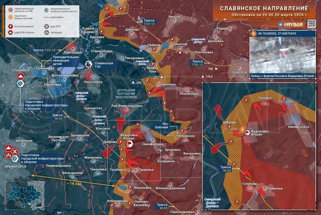 При этом противник активно укрепляет как сам Славянск, так и Краматорск. Создаются дополнительные рубежи обороны, усиливаются инженерные позиции, ведётся переброска резервов. Параллельно продолжаются попытки сдержать продвижение российских сил на соседних направлениях, чтобы не допустить формирования угрозы окружения.