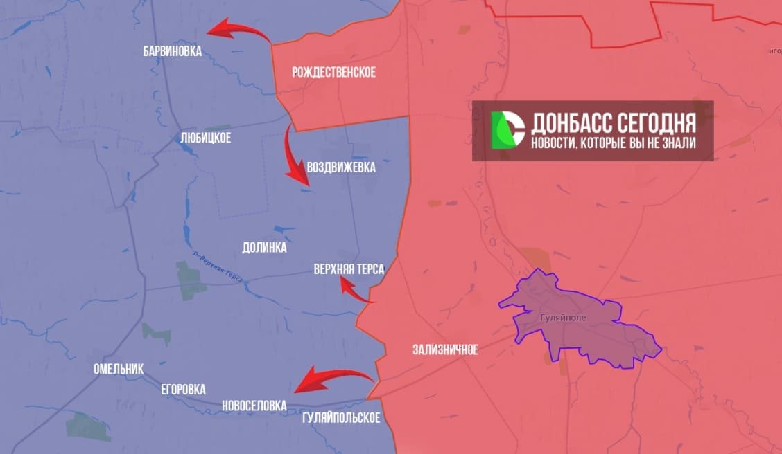 Бои продолжаются на подступах к Чаривному, а также в районах Гуляйпольского, Верхней Терсы, Воздвижевки и Рождественского.