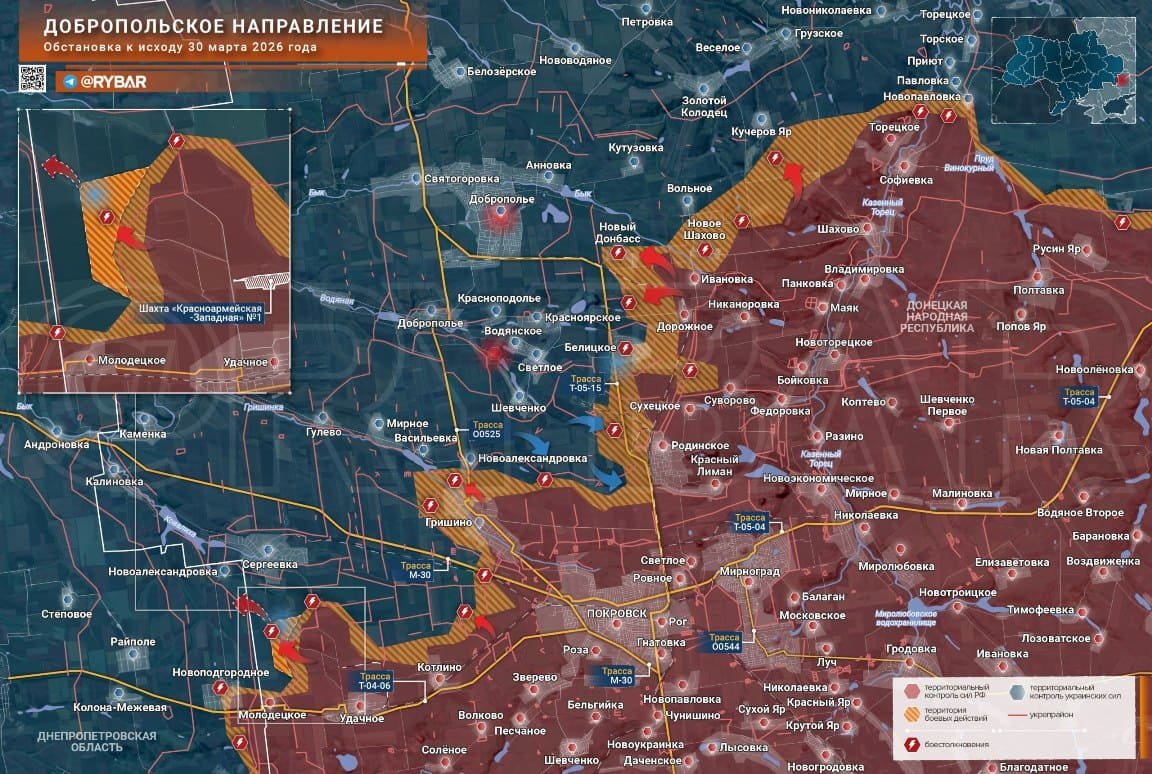 В зоне проведения спецоперации наблюдается устойчивое продвижение российских войск вперёд. В частности, успехи имеют место в Запорожской области, на Константиновском, Добропольском, Сумском и других направлениях. N4k в новом материале собрал последние данные о боях на основе свежих карт боевых действий по состоянию на 31 марта 2026 года.