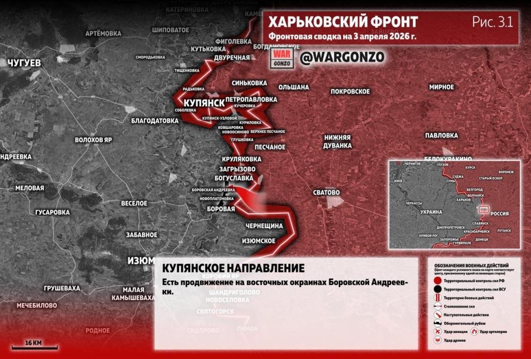 Карта боевых действий на Купянском фронте: данные на сегодняшний день, 03.04.2026