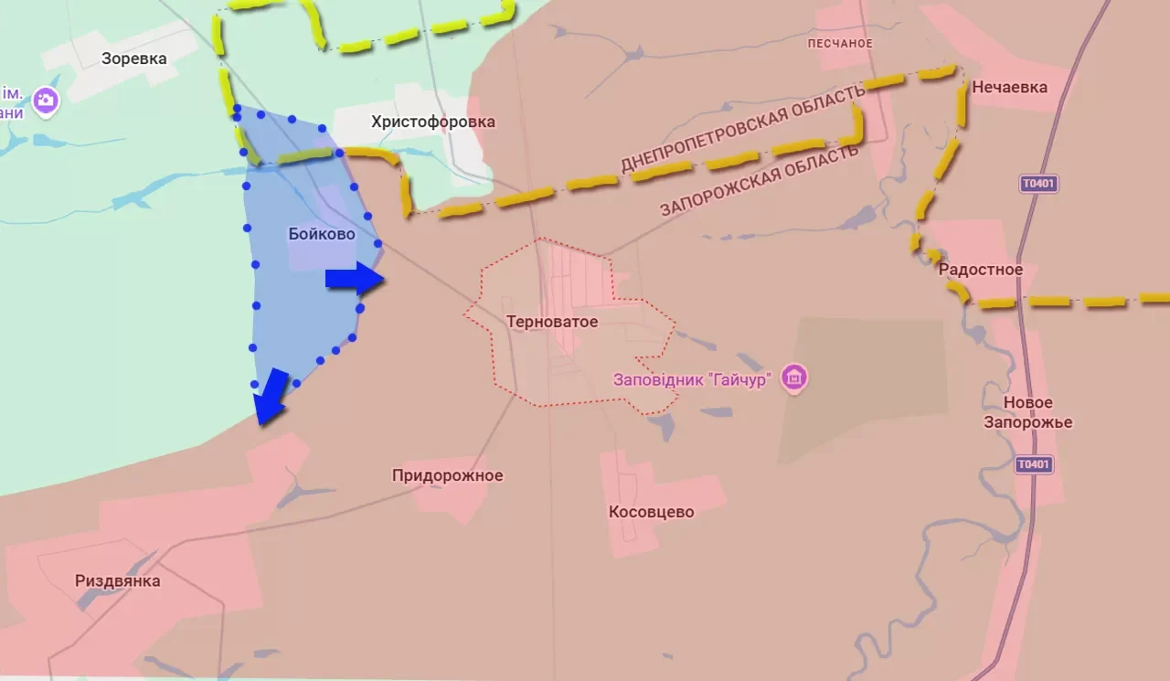 В результате проведённой локальной наступательной операции ВСУ удалось восстановить контроль над селом Бойково. Село относится к Запорожской области, при этом находясь в непосредственной близости от границы с Днепропетровщиной.