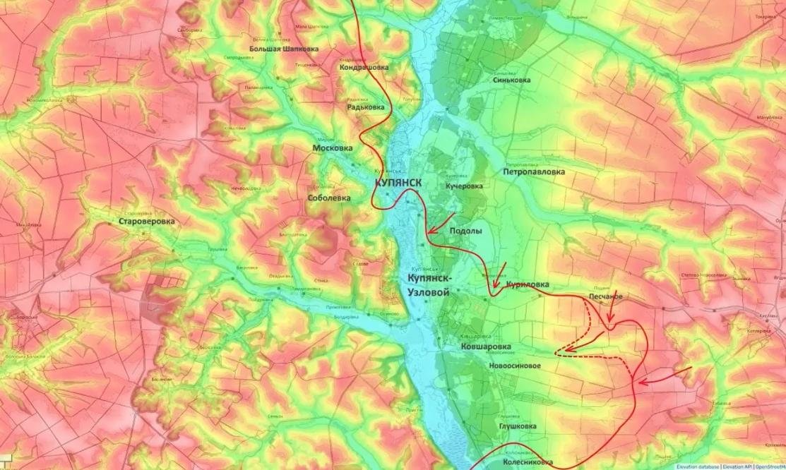 В свою очередь на Купянском участке фронта на западном берегу реки Оскол (северная часть Купянска) идут встречные бои. ВС РФ возвращают контроль над ранее утраченными позициями, в том числе в районе Центральной городской больницы.