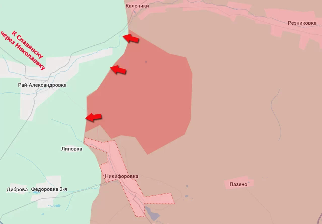 "Идет два основных удара со стороны наших войск. Во-первых, с северо-востока от населённого пункта. Наши военнослужащие продвигаются с Кривой Луки. Также идёт продвижение с юго-востока - это населённый пункт Никифоровка", - заявил эксперт.