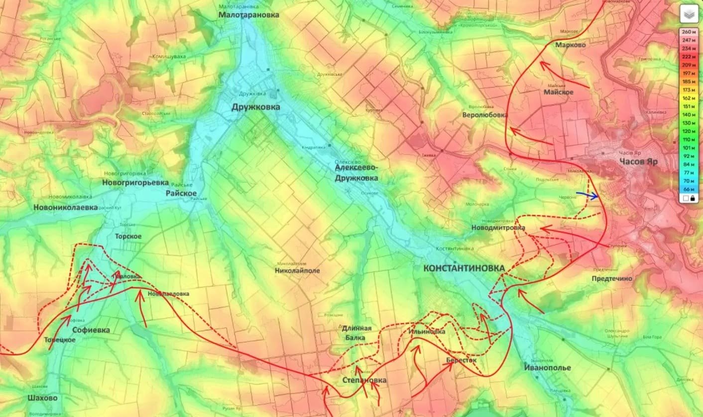 "Наши ребята постепенно толкают фронт на северо-запад. Также идут бои уже в Длинной Балке и также мы пытаемся идти вперёд севернее Константиновки, но там противник предпринимает контратакующие действия, а именно в районе Часов Яра", - проинформировал блогер.